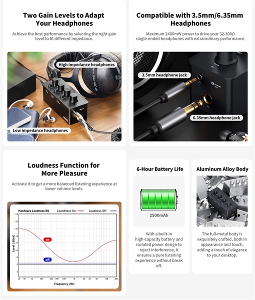 – Pin lâu dài: Tận hưởng tới 6 giờ sử dụng liên tục với pin dung lượng cao tích hợp, trong khi thiết kế nguồn điện riêng biệt loại bỏ nhiễu, mang đến trải nghiệm nghe thuần túy mà không bị gián đoạn.