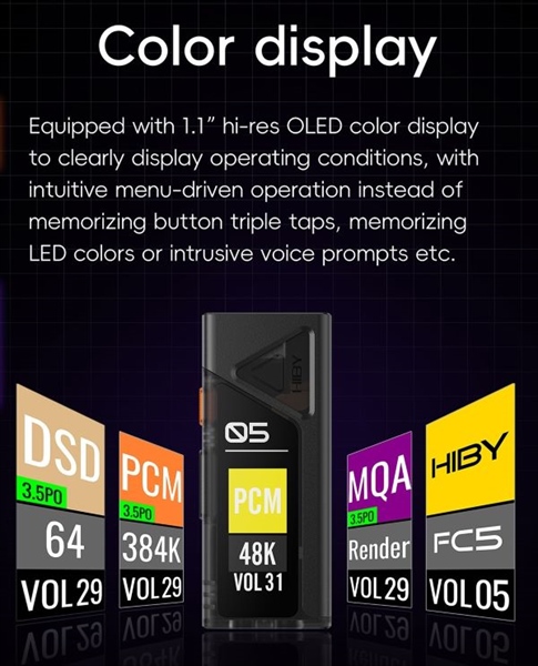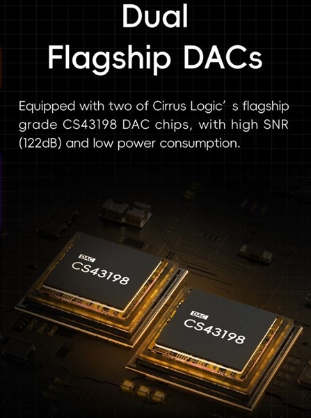 – FC5 new version được trang bị dual chip DAC CS43198 từ Cirrus Logic, với chỉ số SNR cao và tiêu thụ điện năng thấp + Bộ khuếch đại tai nghe SGM8261-5 kép (được thiết kế bởi đội ngũ kỹ sư DAP của HiBy) cho mức công suất và khả năng hiển thị hiếm thấy trên thị trường. Hỗ trợ PCM lên đến 32bit/768kHz và DSD512. Hỗ trợ giải mã MQA 8x (thông qua HiByMusic, TIDAL, v.v.)