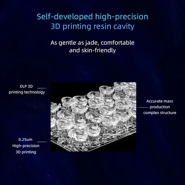 – Với công nghệ in 3D DLP được phát triển độc lập của chúng tôi và quy trình in chính xác 0,25um vật liệu nhựa y tế., mang đến trải nghiệm nhẹ nhàng , thoải mái và thân thiện với làn da