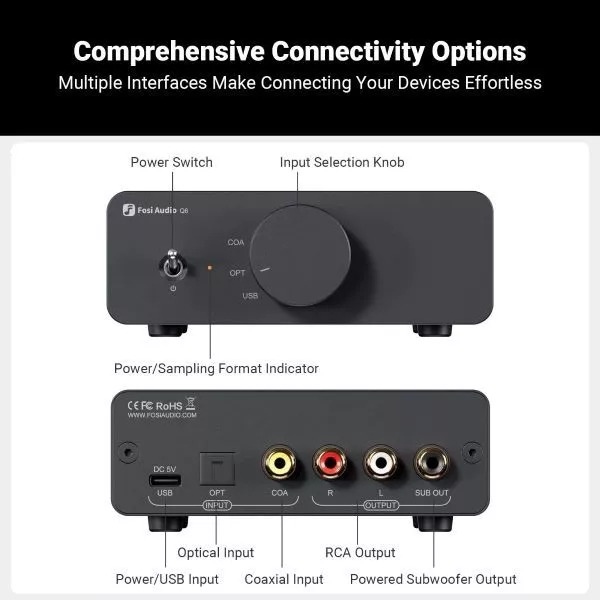 – Fosi Audio Q6 được phát triển theo triết lý Pure HiFi DAC, loại bỏ các yếu tố không cần thiết như màn hình phức tạp để tập trung hoàn toàn vào chất lượng giải mã âm thanh
