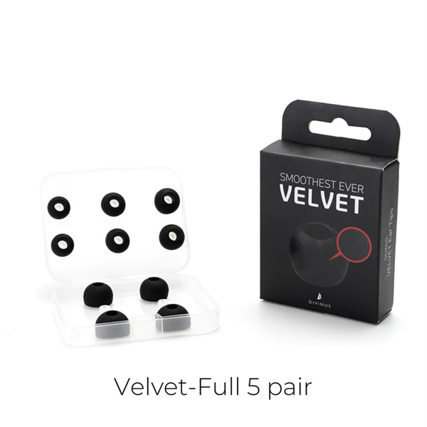 – DIVINUS Velvet từng đoạt giải thưởng là một trong những nút tai có bề mặt được chạm nổi siêu nhỏ với lớp phủ mờ mang lại cảm giác mịn màng hơn so với đầu silicon tiêu chuẩn