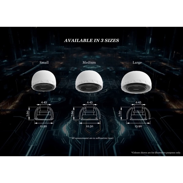 – Có 3 kích cỡ (S – M – L) phù hợp với nhiều kiểu tai, giúp tối ưu độ kín và âm thanh.
