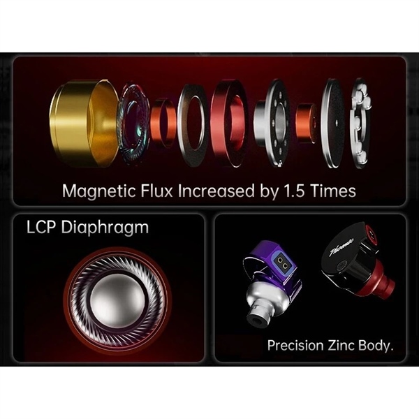– Trang bị cấu hình Driver Dynamic 10mm Dual Magnet hiệu suất cao. Tăng từ thông lên 1.5 lần. Hiệu suất chuyển đổi năng lượng âm thanh +30%. Động cơ âm học Dual Magnetic Circuit Boost, cải thiện tốc độ đáp ứng và độ kiểm soát toàn dải