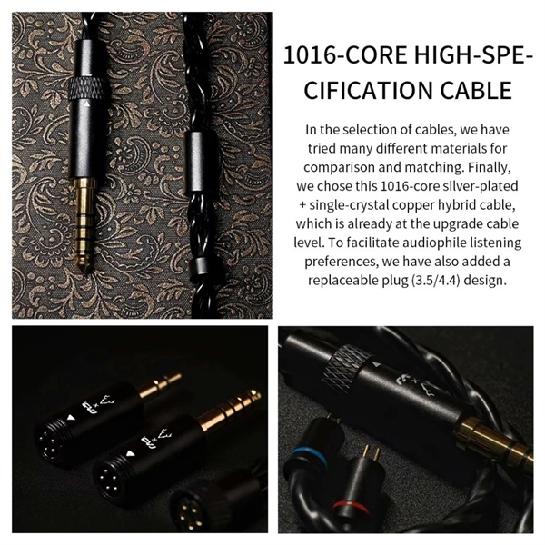 – Cáp tháo rời jack, hỗ trợ cả đầu 3.5mm và 4.4mm Balanced, tương thích đa dạng DAP, DAC/AMP và thiết bị di động.