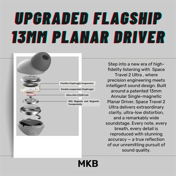 – Trang bị driver planar 13mm do Moondrop phát triển, sử dụng nam châm N55 và cuộn CCAW siêu mỏng, giúp tái tạo âm thanh chi tiết, giảm méo và tăng độ mở dải cao.