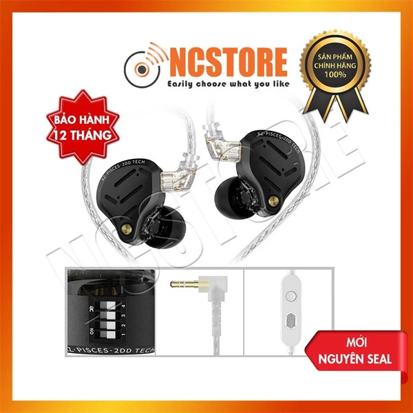 Tai nghe có dây loại không có chụp qua đầu, có micro,nhãn hiệu: KZ, model: PISCES, màu đen,dải tần:7Hz-40kHz,loại đầu cắm 3.5mm,dài 1.2m,NSX: DONGGUAN YUANZE ACOUSTICS TECHNOLOGY CO, LTD,mới100%